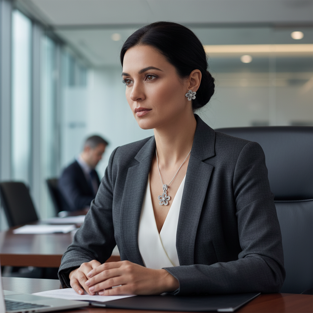 Hallmarked 92.5 Pure Silver Nidhi Marcasite Floral Pendant Set